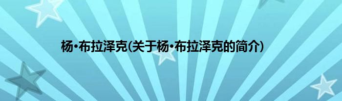 大家好,杨·布拉泽克,关于杨·布拉泽克的简介很多人还不知道,现在让我们一起来看看吧!