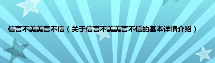 本文关于信言不美美言不信的基本详情介绍就讲解完毕,希望对大家有所帮助。