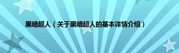 本文关于黑暗超人的基本详情介绍就讲解完毕,希望对大家有所帮助。