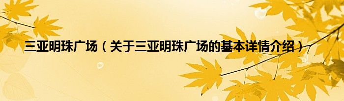 本文关于三亚明珠广场的基本详情介绍就讲解完毕,希望对大家有所帮助。