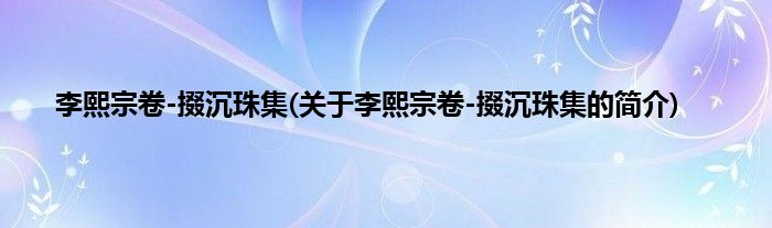 1、 《李熙宗卷-掇沉珠集》是2010年复旦大学出版社出版的图书。