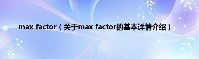 大家好我是小蝌蚪,max factor,关于max factor的基本详情介绍很多人还不知道,那么现在让我们一起来看看吧!