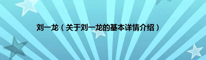 本文关于刘一龙的基本详情介绍就讲解完毕,希望对大家有所帮助。