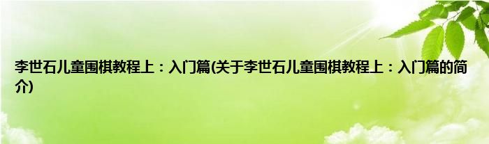 1、 《李世石儿童围棋教程上:入门篇》是2022年化学工业出版社出版的图书。