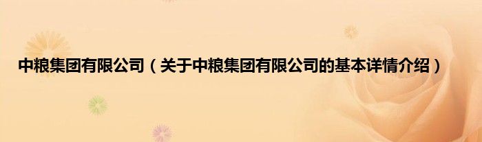 本文关于中粮集团有限公司的基本详情介绍就讲解完毕,希望对大家有所帮助。
