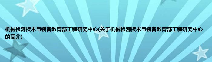 大家好,机械检测技术与装备教育部工程研究中心,关于机械检测技术与装备教育部工程研究中心的简介很多人还不知道,现在让我们一起来看看吧!