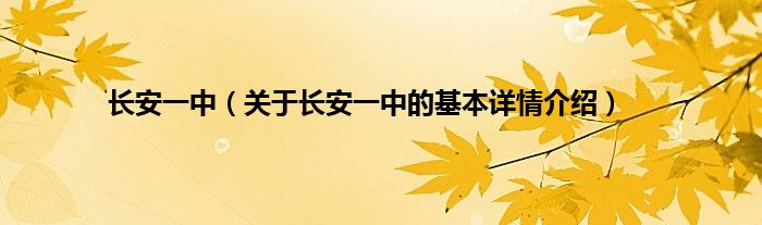 本文关于长安一中的基本详情介绍就讲解完毕,希望对大家有所帮助。