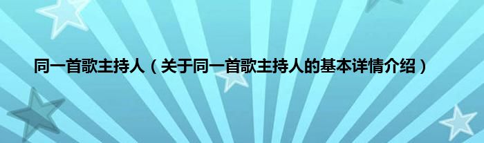 本文关于同一首歌主持人的基本详情介绍就讲解完毕,希望对大家有所帮助。