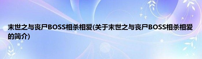 本文关于末世之与丧尸BOSS相杀相爱的简介就讲解完毕,希望对大家有所帮助。