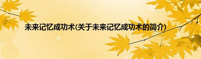大家好,未来记忆成功术,关于未来记忆成功术的简介很多人还不知道,现在让我们一起来看看吧!
