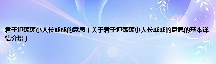 君子坦荡荡小人长戚戚的意思(关于君子坦荡荡小人长戚戚的意思的基本详情介绍)