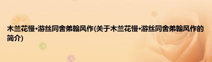 本文关于木兰花慢·游丝同舍弟翰风作的简介就讲解完毕,希望对大家有所帮助。