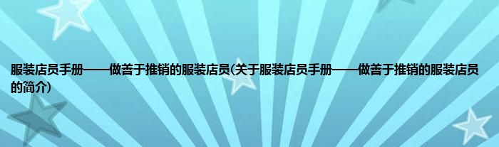 本文关于服装店员手册——做善于推销的服装店员的简介就讲解完毕,希望对大家有所帮助。