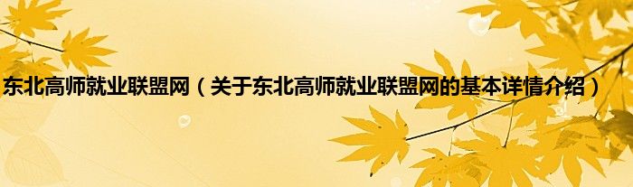 本文关于东北高师就业联盟网的基本详情介绍就讲解完毕,希望对大家有所帮助。