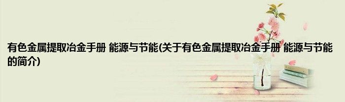 本文关于有色金属提取冶金手册 能源与节能的简介就讲解完毕,希望对大家有所帮助。