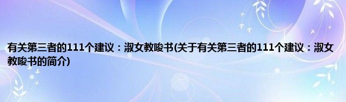 本文关于有关第三者的111个建议:淑女教唆书的简介就讲解完毕,希望对大家有所帮助。