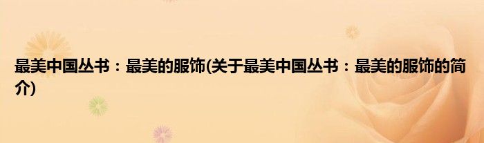 本文关于最美中国丛书:最美的服饰的简介就讲解完毕,希望对大家有所帮助。