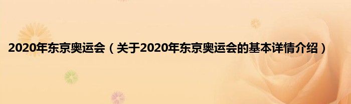 本文关于2020年东京奥运会的基本详情介绍就讲解完毕,希望对大家有所帮助。