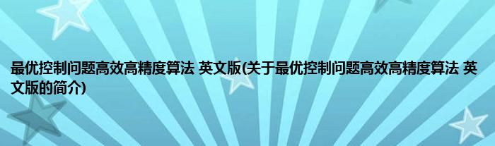 1、 《最优控制问题高效高精度算法(英文版)》是2015年科学出版社出版的图书。