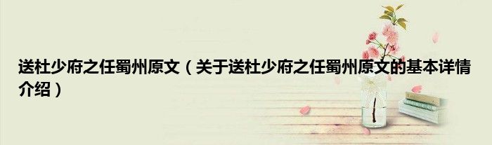 本文关于送杜少府之任蜀州原文的基本详情介绍就讲解完毕,希望对大家有所帮助。