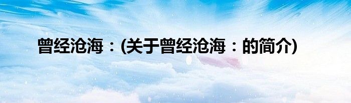 本文关于曾经沧海:的简介就讲解完毕,希望对大家有所帮助。