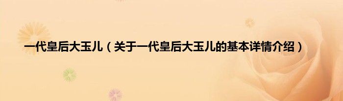 本文关于一代皇后大玉儿的基本详情介绍就讲解完毕,希望对大家有所帮助。