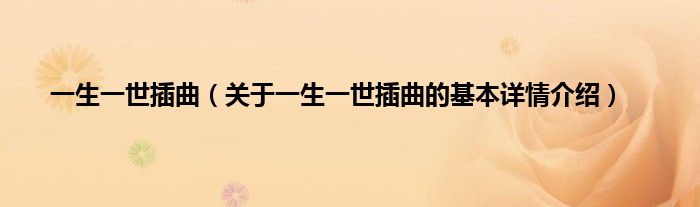本文关于一生一世插曲的基本详情介绍就讲解完毕,希望对大家有所帮助。