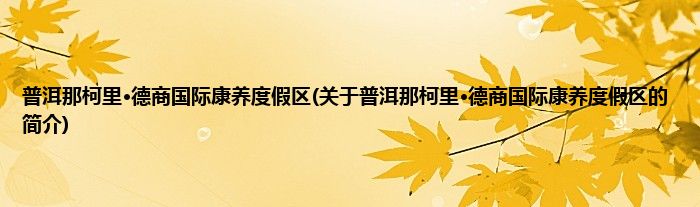 本文关于普洱那柯里·德商国际康养度假区的简介就讲解完毕,希望对大家有所帮助。