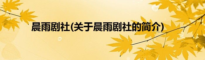 大家好,晨雨剧社,关于晨雨剧社的简介很多人还不知道,现在让我们一起来看看吧!
