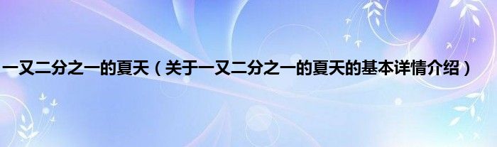 本文关于一又二分之一的夏天的基本详情介绍就讲解完毕,希望对大家有所帮助。