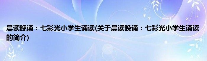 本文关于晨读晚诵:七彩光小学生诵读的简介就讲解完毕,希望对大家有所帮助。
