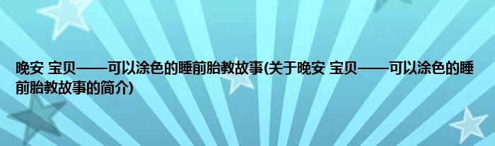 本文关于晚安,宝贝——可以涂色的睡前胎教故事的简介就讲解完毕,希望对大家有所帮助。