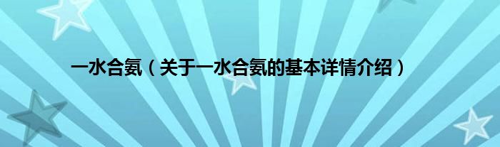 本文关于一水合氨的基本详情介绍就讲解完毕,希望对大家有所帮助。