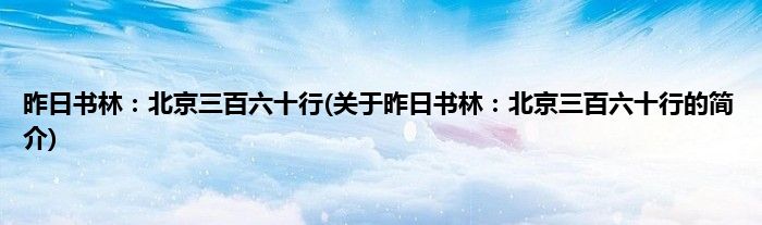 本文关于昨日书林:北京三百六十行的简介就讲解完毕,希望对大家有所帮助。