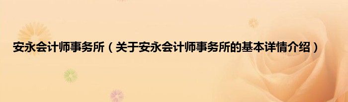 本文关于安永会计师事务所的基本详情介绍就讲解完毕,希望对大家有所帮助。