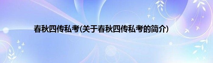 大家好,春秋四传私考,关于春秋四传私考的简介很多人还不知道,现在让我们一起来看看吧!