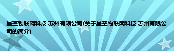 本文关于星空物联网科技 苏州有限公司的简介就讲解完毕,希望对大家有所帮助。