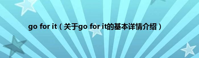 本文关于go for it的基本详情介绍就讲解完毕,希望对大家有所帮助。