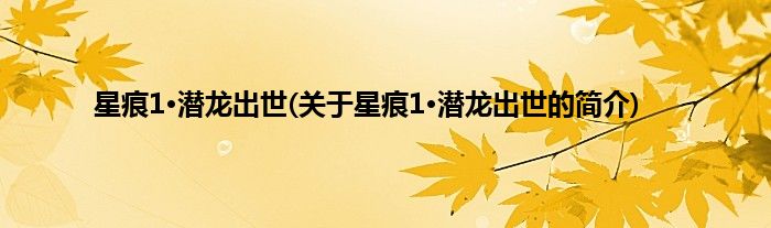 本文关于星痕1·潜龙出世的简介就讲解完毕,希望对大家有所帮助。