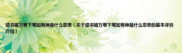 本文关于读书破万卷下笔如有神是什么意思的基本详情介绍就讲解完毕,希望对大家有所帮助。