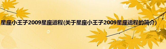 本文关于星座小王子2009星座运程的简介就讲解完毕,希望对大家有所帮助。