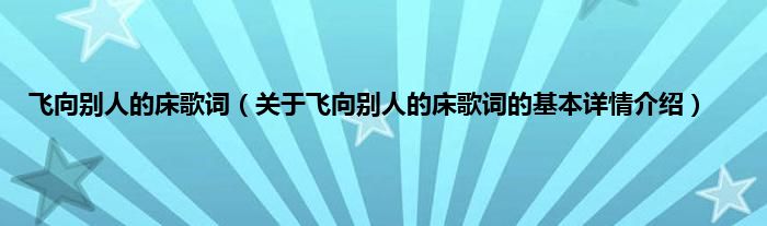 飞向别人的床歌词(关于飞向别人的床歌词的基本详情介绍)