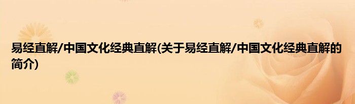 本文关于易经直解/中国文化经典直解的简介就讲解完毕,希望对大家有所帮助。