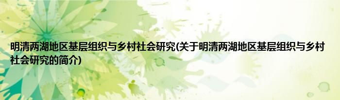 本文关于明清两湖地区基层组织与乡村社会研究的简介就讲解完毕,希望对大家有所帮助。