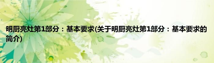 本文关于明厨亮灶第1部分:基本要求的简介就讲解完毕,希望对大家有所帮助。