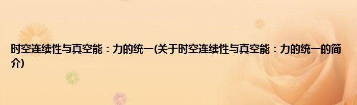 本文关于时空连续性与真空能:力的统一的简介就讲解完毕,希望对大家有所帮助。