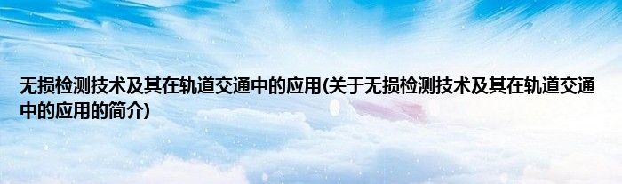 本文关于无损检测技术及其在轨道交通中的应用的简介就讲解完毕,希望对大家有所帮助。