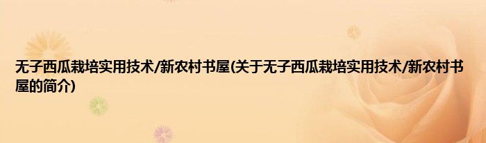 本文关于无子西瓜栽培实用技术/新农村书屋的简介就讲解完毕,希望对大家有所帮助。