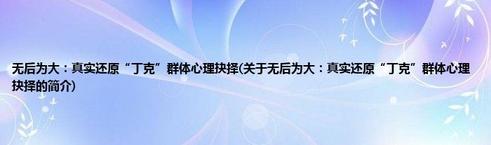 大家好,无后为大:真实还原“丁克”群体心理抉择,关于无后为大:真实还原“丁克”群体心理抉择的简介很多人还不知道,现在让我们一起来看看吧!