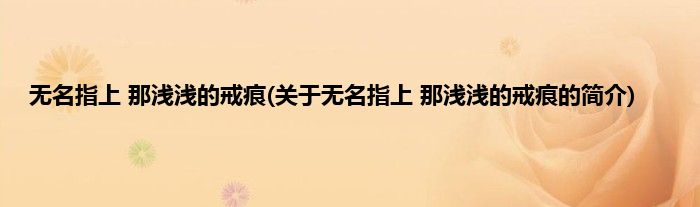 本文关于无名指上,那浅浅的戒痕的简介就讲解完毕,希望对大家有所帮助。